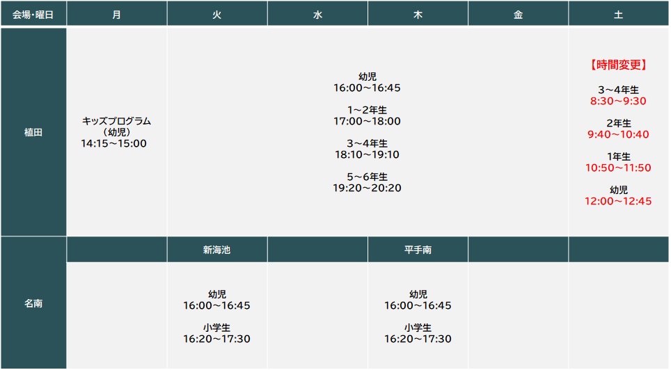 植田スクールの時間が決まりました。